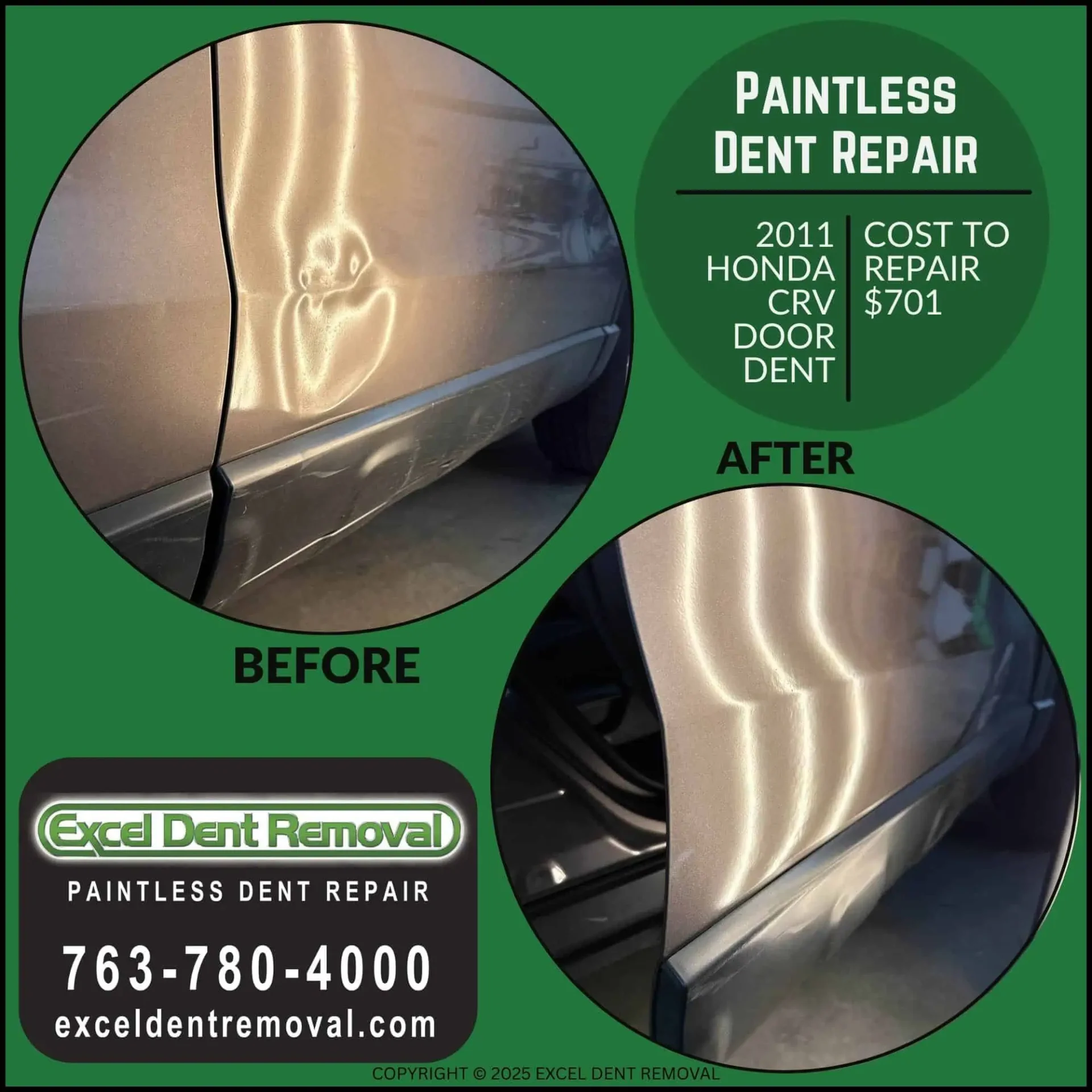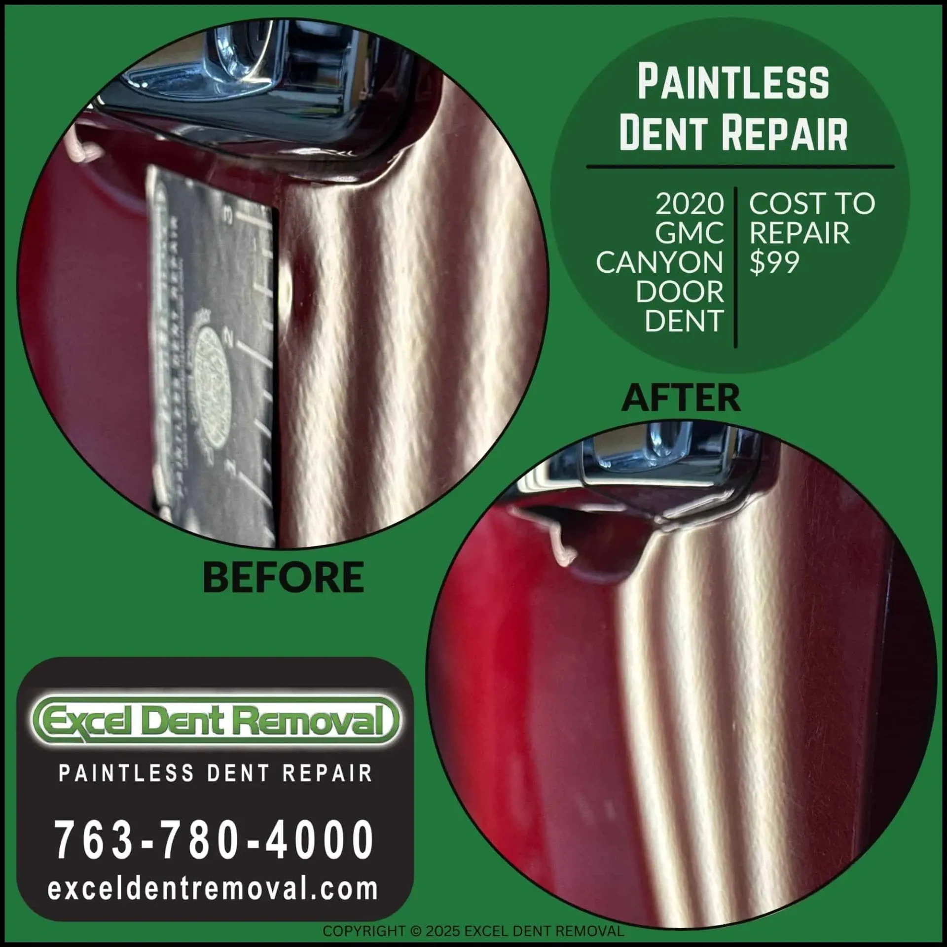 I look forward to providing an excellent dent repair for you."